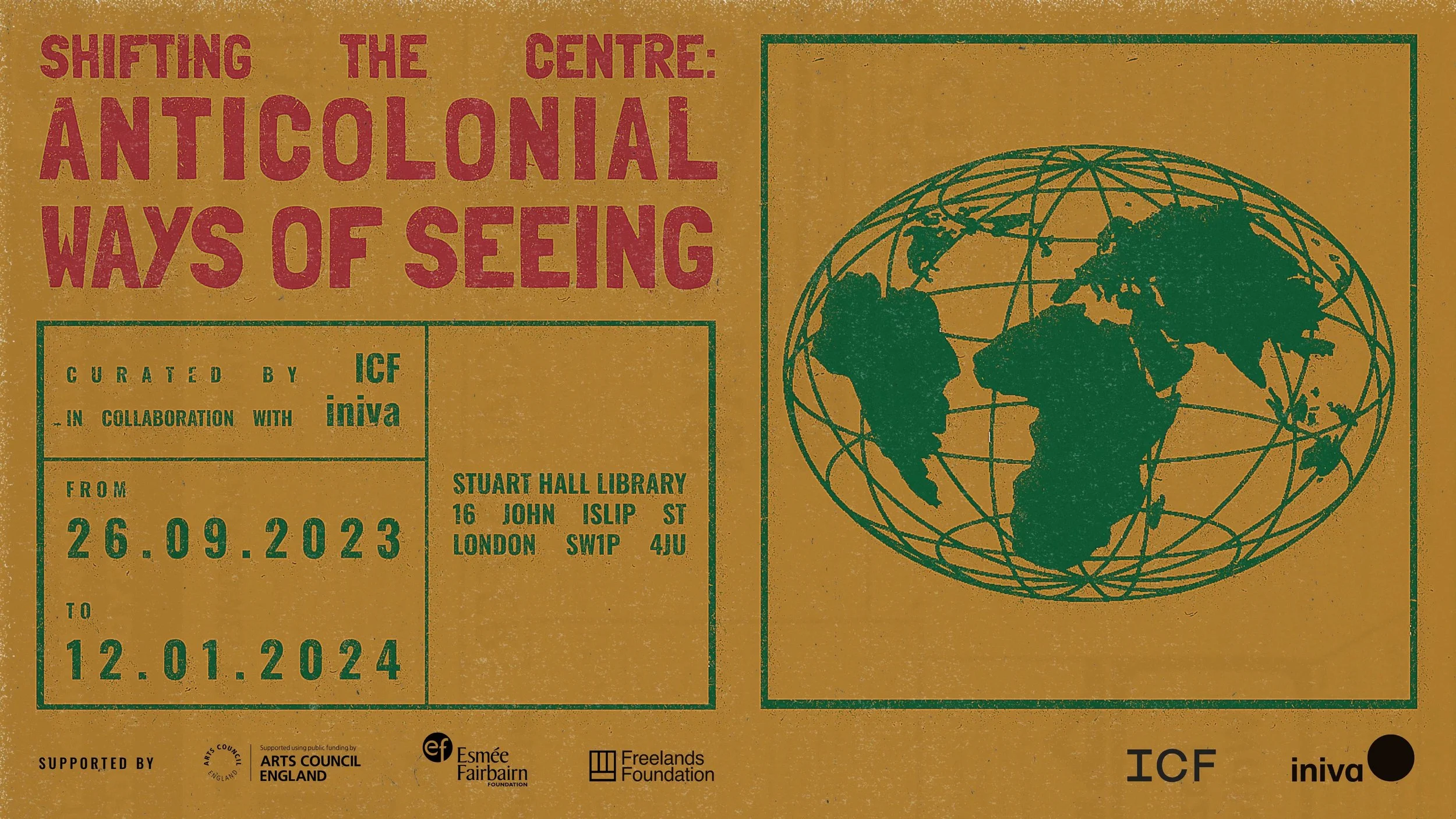 Anticolonial Ways of Seeing is the second iteration of ICF’s Shifting the Centre project. It considers the concept of ‘anticolonialism’ as a framework that allows clear links to be drawn between racialisation and capitalism, between past and present-day injustices, and local and global political struggles. The exhibition asks: is a contemporary anticolonial visual language possible? What are its concerns, reference points, and principles? What kinds of demands can it articulate? What sort of education can it provide? What histories does it draw from?